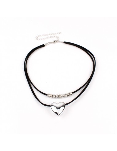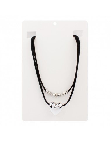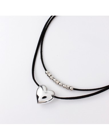 Collar de doble caída de de gamuza, con dije exclusivo de ccb con forma de corazón níquel e intervenida con piezas pasantes de ccb.