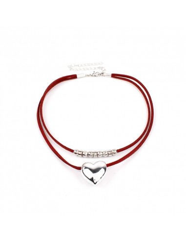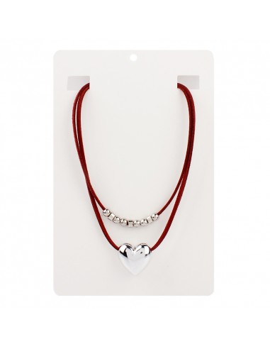 Collar de doble caída de de gamuza, con dije exclusivo de ccb con forma de corazón níquel e intervenida con piezas pasantes de ccb.