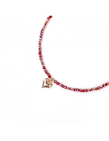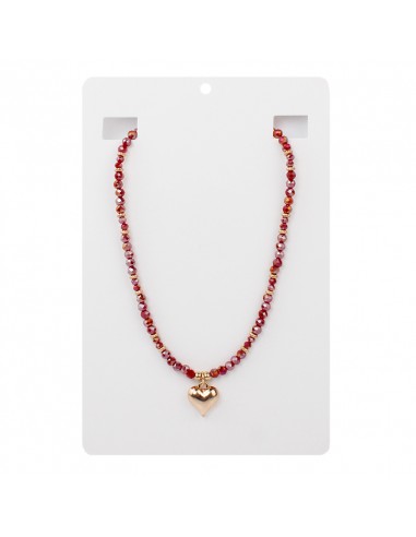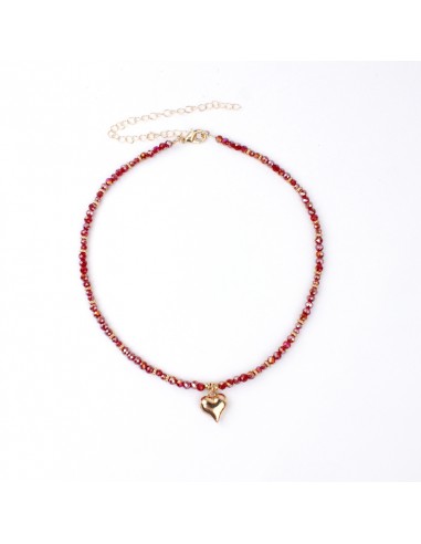 Collar corto de rocas de cristal, piezas pasantes doradas y dije exclusivo con forma de corazón.