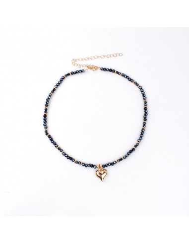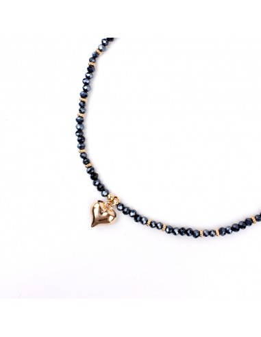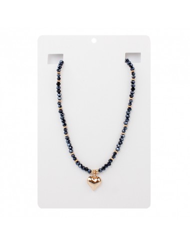 Collar corto de rocas de cristal, piezas pasantes doradas y dije exclusivo con forma de corazón.