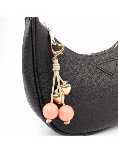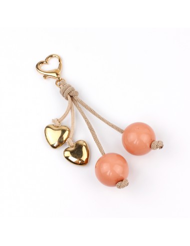 Llavero de cordón y gamuza con dijes exclusivos formando una cereza.