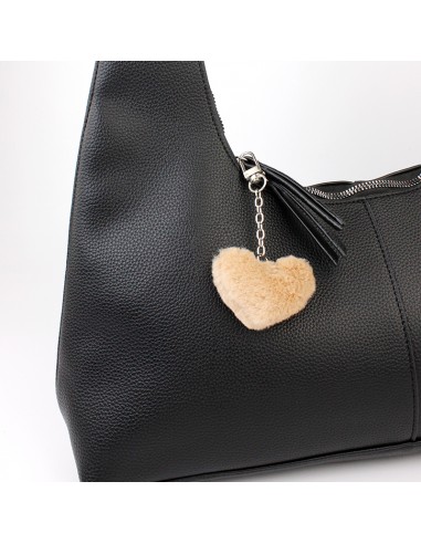 Llavero y bag charm de peluche con forma de corazón y cadena diferenciada níquel.