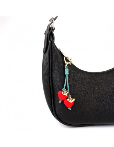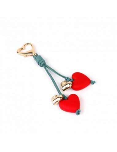 Llavero de gamuza con piezas exclusivas de acrílico engomado y mosquetón diferenciado en forma de corazón.