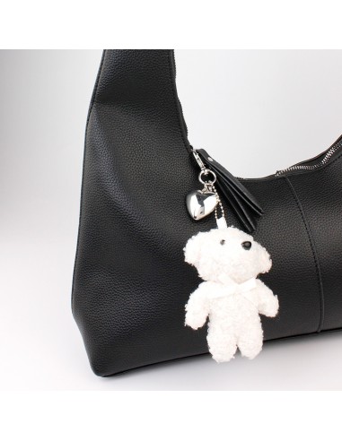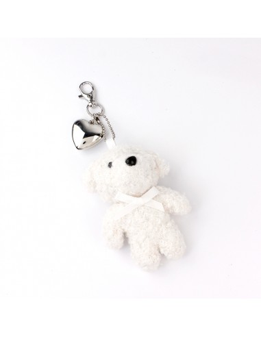 Llavero y bag charm de peluche con forma de perrito y pieza de ccb exclusiva níquel.
