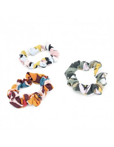 Set de tres Scrunchie en tela crepe de 10 cm.