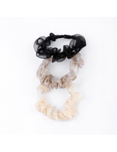 Set de tres scrunchies de tela organza.