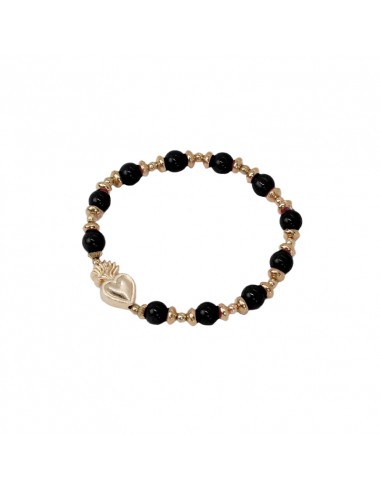Pulsera elástica de piezas de vidrio con dijes exclusivos dorados.