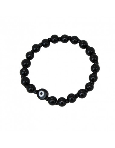 Pulsera elástica de piezas de vidrio con mostacillas y ojo exclusivo de vidrio.