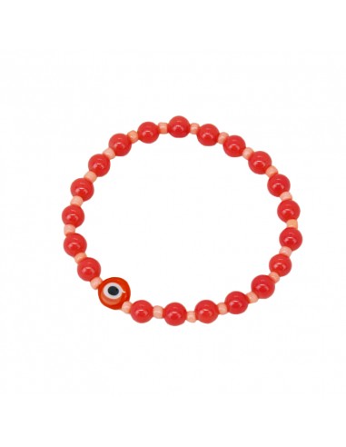Pulsera elástica de piezas de vidrio con mostacillas y ojo exclusivo de vidrio.