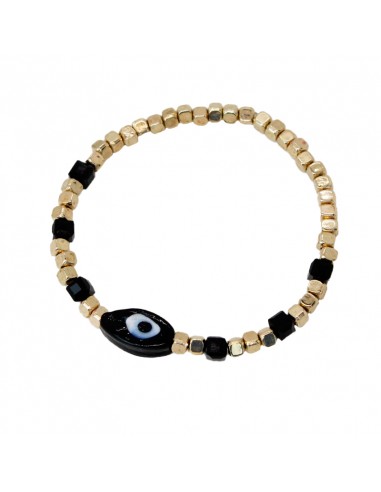 Pulsera elástica de piezas de ccb doradas, cuadrados de vidrio y dije exclusivo pintado a mano.