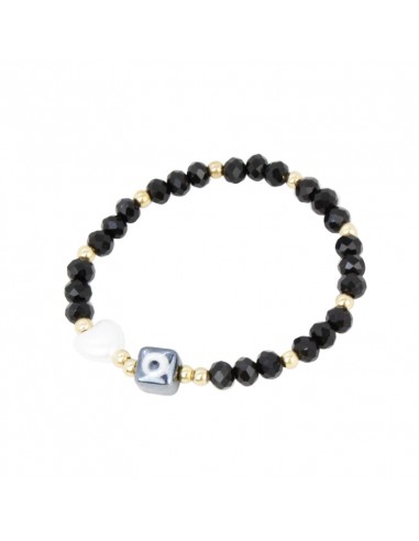 Pulsera elástica de rocas de cristal con dije perlado y ojo exclusivo de cerámica.