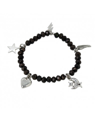 Pulsera elástica de rocas de cristal con dijes exclusivos níquel.