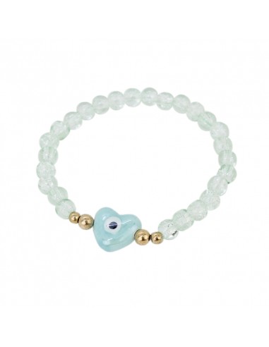 Pulsera elástica de piezas de vidrio con dije exclusivo de cerámica pintado a mano.