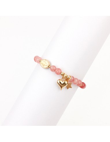 Pulsera elástica de piezas de vidrio con dijes exclusivos dorados.