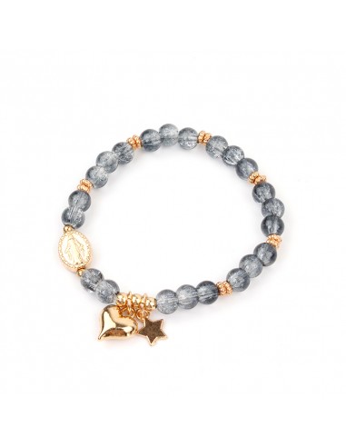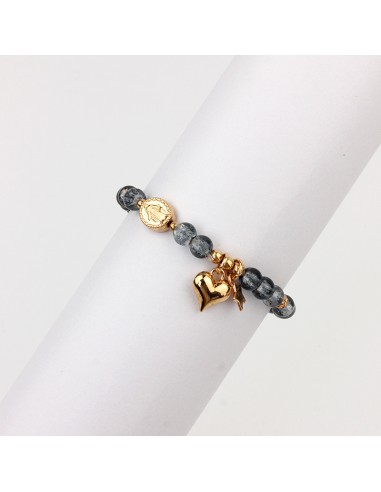 Pulsera elástica de piezas de vidrio con dijes exclusivos dorados.