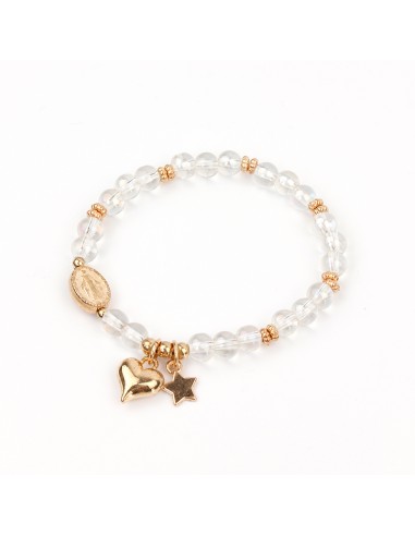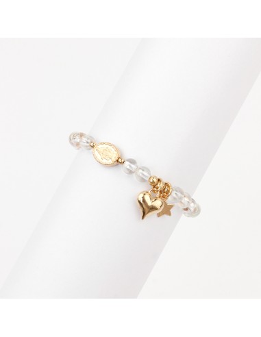 Pulsera elástica de piezas de vidrio con dijes exclusivos dorados.