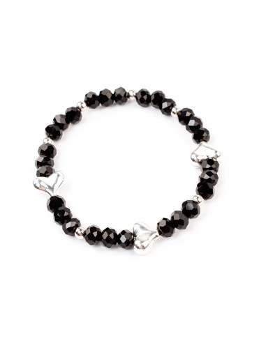 Pulsera elástica de roca de cristal con dijes exclusivos con forma de corazón níquel.