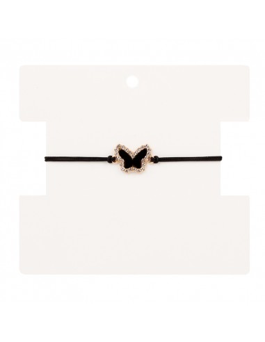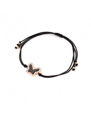 Pulsera de hilo con dije exclusivo de strass con forma de mariposa e incrustación de acrilíco y cierre macramé.