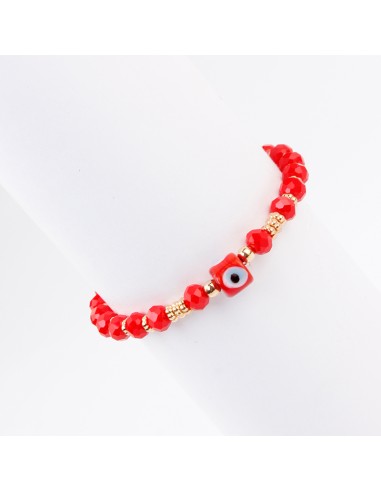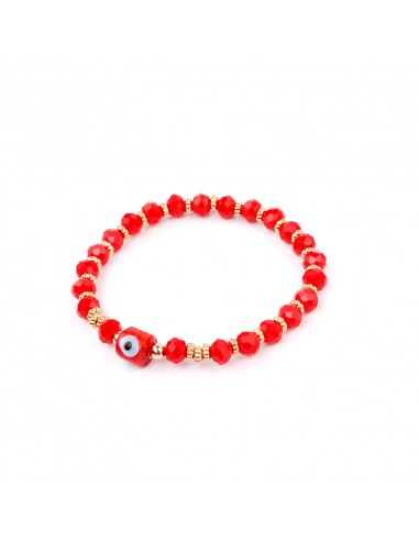 Pulsera elástica de roca de cristal con pieza de cerámica exclusiva y separadores pasantes dorados.