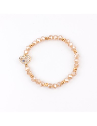 Pulsera elástica de roca de cristal con dije exclusivo de strass con forma de corazón.