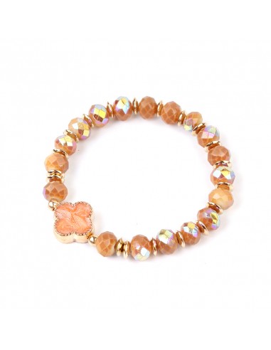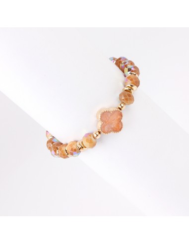 Pulsera elástica de rocas de cristal con dije exclusivo pintado a mano dorado.