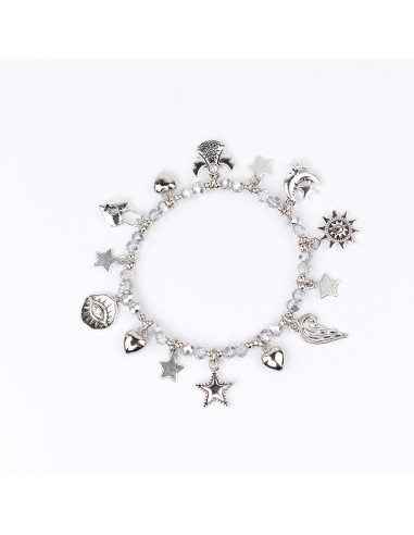 Pulsera elástica rocas de cristal y múltiples dijes exclusivos níquel.