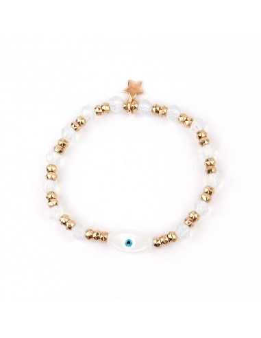 Pulsera elástica de rocas de cristal con ojo exclusivo pintado a mano de vidrio.