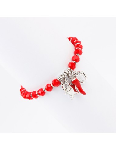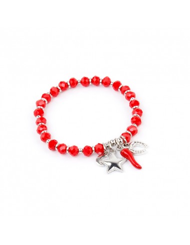Pulsera elástica de rocas de cristal con dijes exclusivos níquel y ají de vidrio.