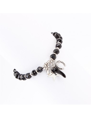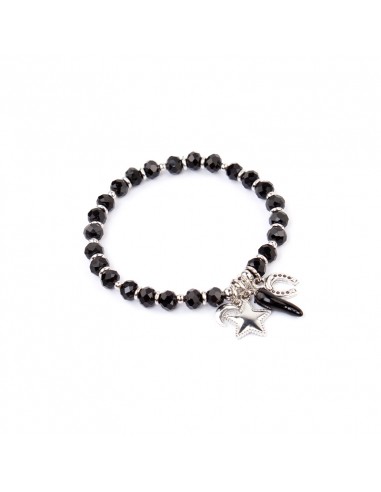 Pulsera elástica de rocas de cristal con dijes exclusivos níquel y ají de vidrio.