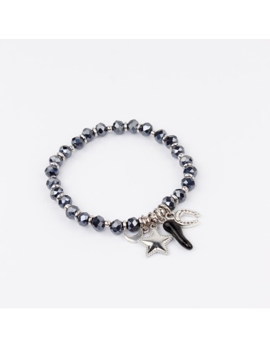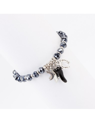 Pulsera elástica de rocas de cristal con dijes exclusivos níquel y ají de vidrio.