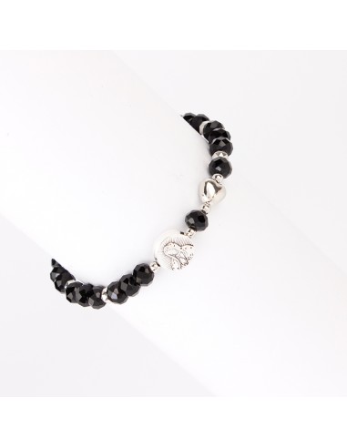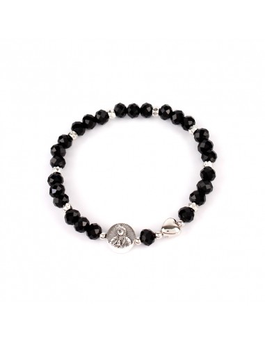 Pulsera elástica de rocas de cristal con dije pasante exclusivo con forma de medalla níquel.