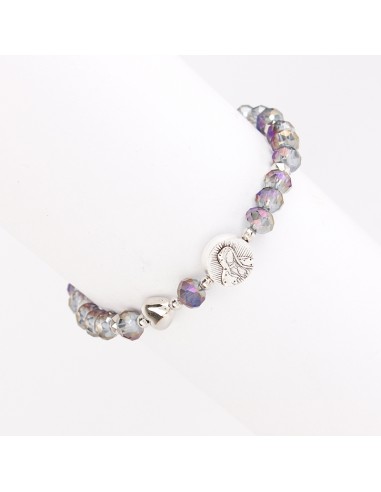 Pulsera elástica de rocas de cristal con dije pasante exclusivo con forma de medalla níquel.