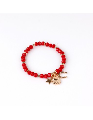 Pulsera elástica de roca de cristal con dije exclusivos dorados.