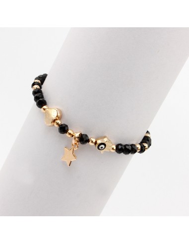 Pulsera elástica de rocas de cristal con dijes exclusivos y pintados a mano dorados.