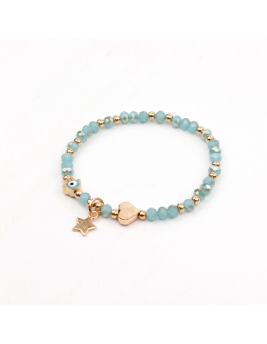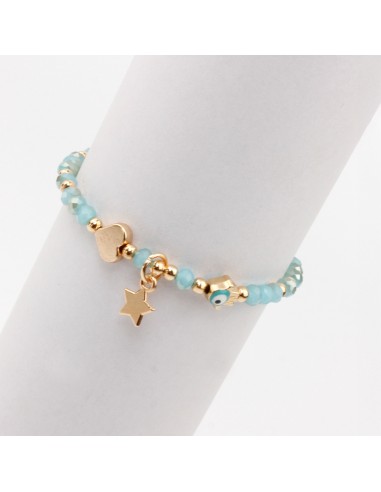 Pulsera elástica de rocas de cristal con dijes exclusivos y pintados a mano dorados.