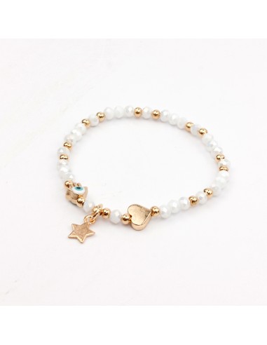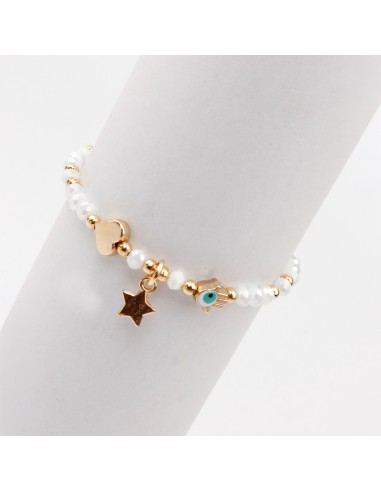 Pulsera elástica de rocas de cristal con dijes exclusivos y pintados a mano dorados.
