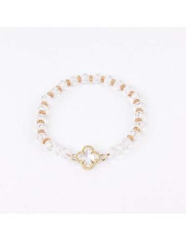 Pulsera elástica de roca de cristal con dije exclusivo doble agarre con forma de trébol.
