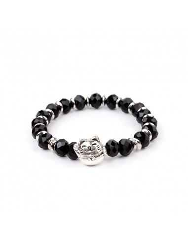 Pulsera elástica de rocas de cristal y dije de fundición exclusivo pasante con forma de gato de la fortuna.