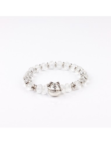 Pulsera elástica de rocas de cristal y dije de fundición exclusivo pasante con forma de gato de la fortuna.