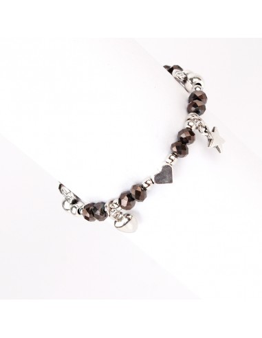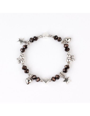 Pulsera elástica de rocas de cristal con múltiples dijes exclusivos de distintas formas y tamaños níquel.