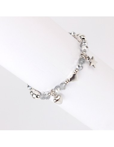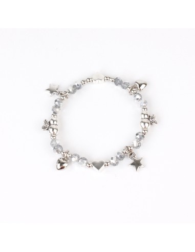 Pulsera elástica de rocas de cristal con múltiples dijes exclusivos de distintas formas y tamaños níquel.
