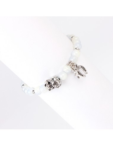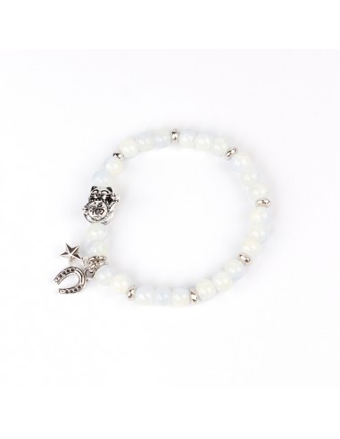 Pulsera elástica de piezas de vidrio con dijes exclusivos de distintas formas y tamaños níquel.