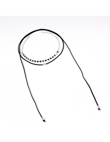 Set de dos Choker corbatero de gamuza múltiples vueltas y de cadena diferenciada con dijes exclusivos níquel y terminaciones en punteras.