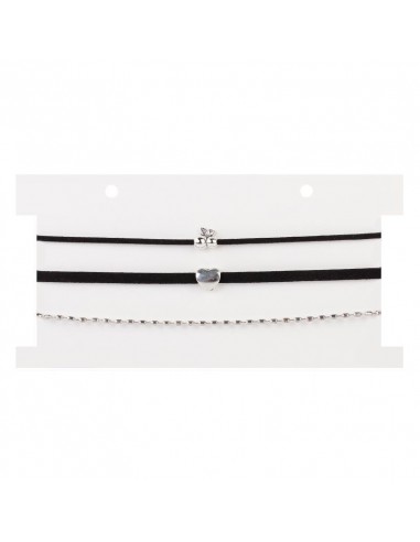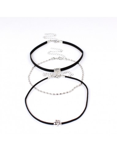 Set de tres choker de gamuza y cadena diferenciada con dije exclusivos níquel.