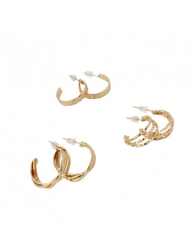 Set de tres pares de argollas dorado.