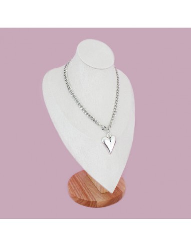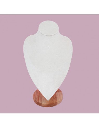 Exhibidor de collares busto grande forrado en tela, con base de madera.