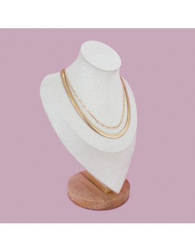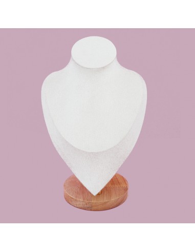 Exhibidor de collares busto chico forrado en tela, con base de madera.