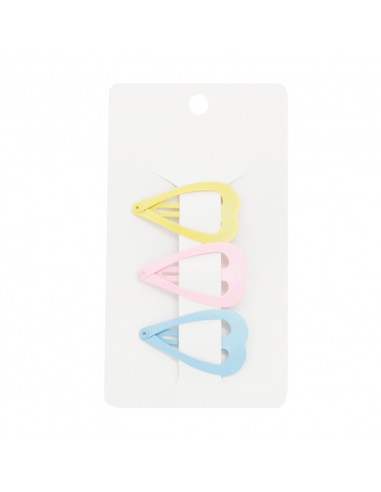 Set de 3 hebillas para pelo de metal con forma de corazón.