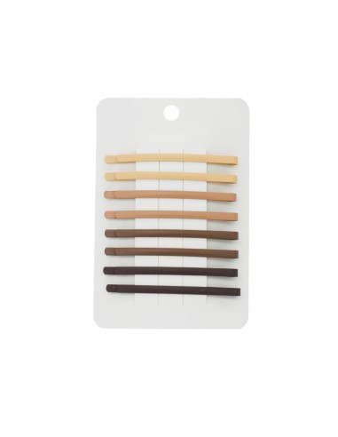 Set de 8 hebillas para pelo de metal mate con forma rectangular.