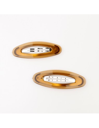 Set de dos hebillas de metal con aplique acrílico para pelo con forma ovalada.
